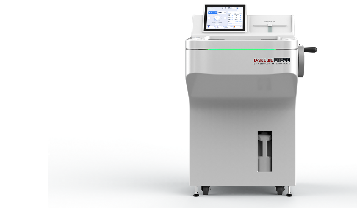 De Dakewe CT520 cryostaat microtoom biedt consistent en reproduceerbaar snijden, waarbij tot 20 preparaten tegelijkertijd ingevroren kunnen worden. Het beschikt over dubbele compressoren, nauwkeurige temperatuurregeling en snelle koeling. Afzonderlijke temperatuurinstellingen voor preparaatkop, vriesplank en messenhouder maken het mogelijk om de doeltemperatuur in 1,5 uur te bereiken.